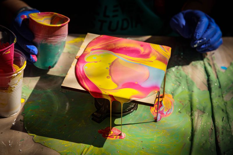 Art activities are known to lower stress levels and promote mental calmness. Acrylic Pour takes your mind off of your everyday life and provides a relaxing distraction. Many people with high pressure jobs come to the workshops because they find them very beneficial and so they return again and again.